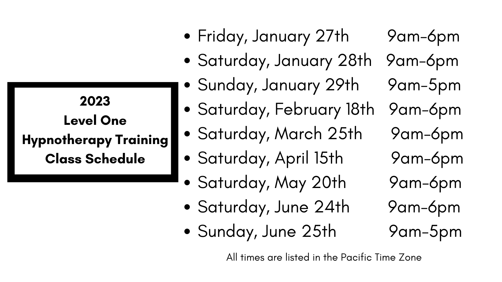 Class Schedule - Level One